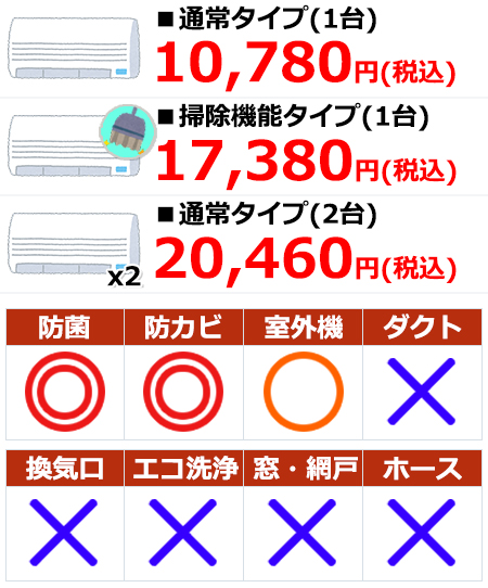 | こだわり 防カビコートが無料オプション 対象エリア:47都道府県※ ※一部地域不可 ■簡易料金表 ![]() | 詳細 価格重視品質重視特典重視接客重視評価重視補償重視 | |