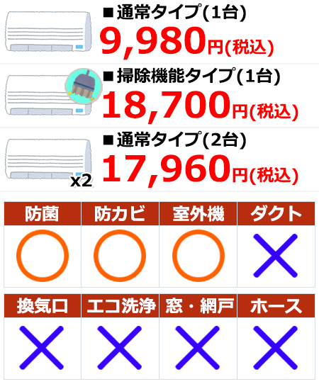| こだわり 掃除機能付きタイプが格安 対象エリア:14都道府県 ■簡易料金表 ![]() | 詳細 価格重視品質重視特典重視接客重視評価重視補償重視 | |