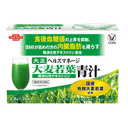 大正製薬の機能性表示食品食後血糖値の上昇抑制をサポートし、BMIが高めの方(BMI23以上30未満)の内臓脂肪を減らすのを助ける「難消化性デキストリン」を配合したおいしい青汁。「難消化性デキストリン」の働きにより、時間をかけて糖質が吸収されるため、糖の吸収を抑…