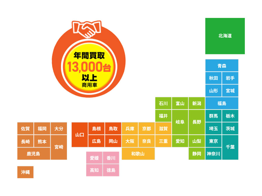 1,年間取扱件数10万件、提携事業者13,000社以上の幅広い販路で大型・中型トラックだけでなく、小型トラックでも高価買取を実現。