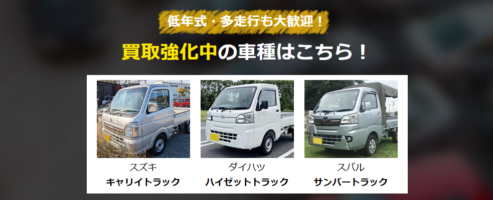 また、過走行・旧年代式、バッテリーが上がって動かない、故障車、修復履歴車、事故車も対応しているところは安心です。