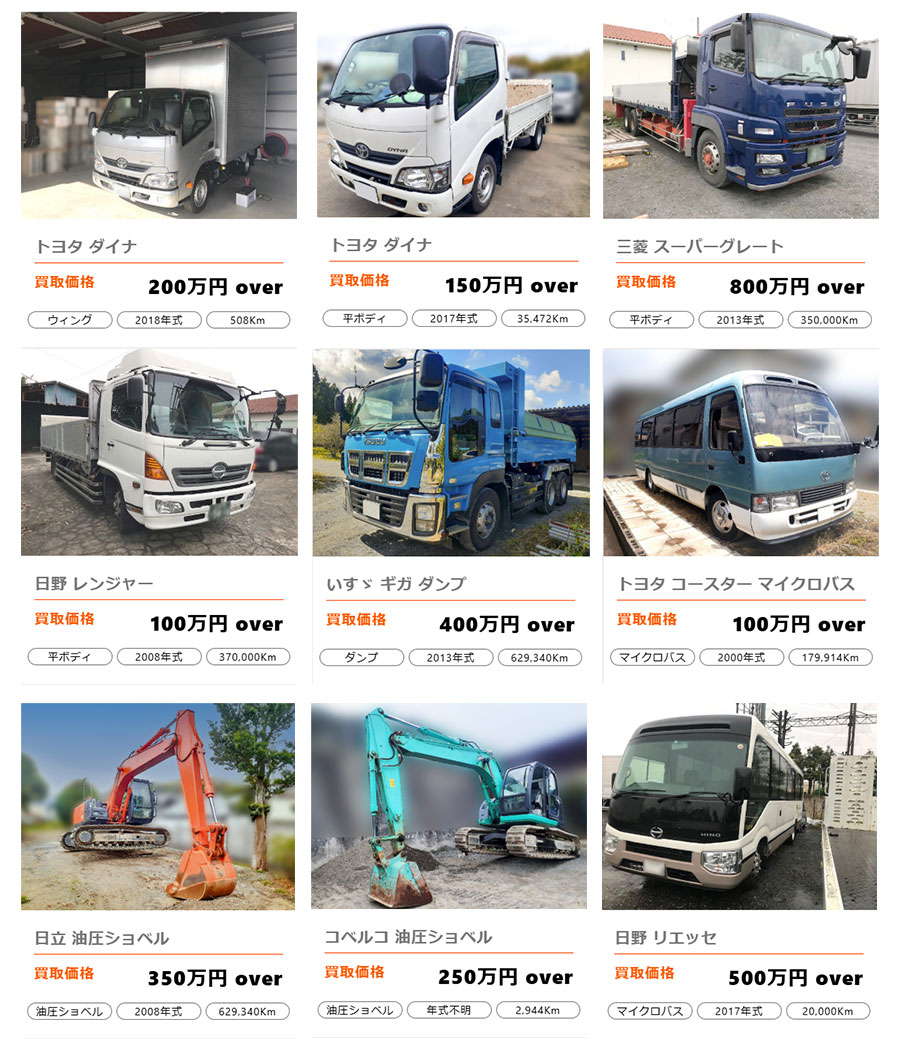 そのため、買取で失敗しないためにも買取実績の豊富な、トラック・重機・バスの買取査定専門店を紹介します!
