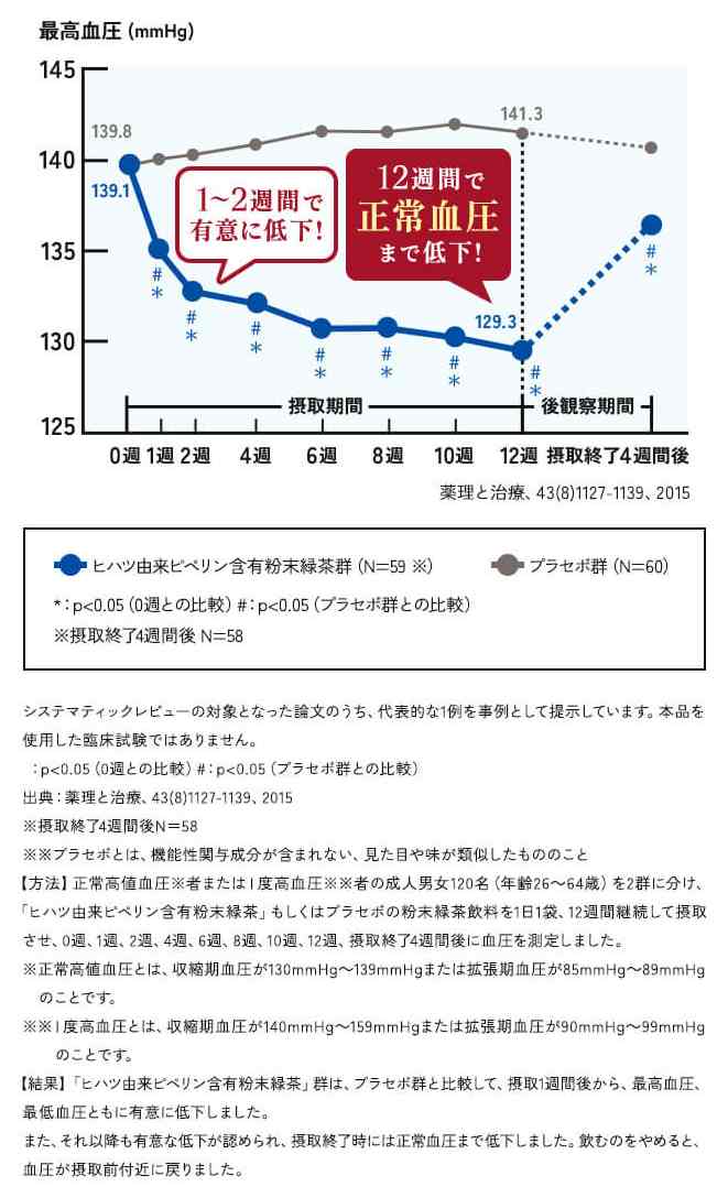 ヒハツ由来ピペリンは高め※2の血圧を下げるのをサポートすることが報告されています。
