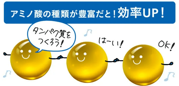 アミノ酸は、カラダを構成するタンパク質の生成を担っており、不足してはいけない栄養素のひとつです。