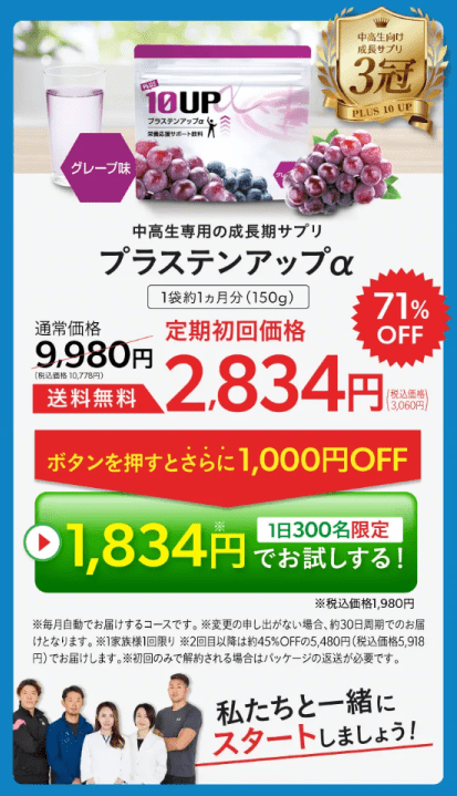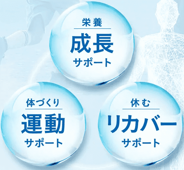 栄養素がバランスよく配合されていて、成長期に必要な「栄養・運動・休む」の要素すべてをサポート。