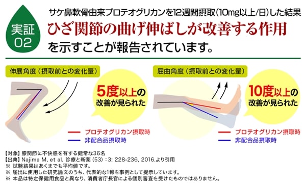 軟骨成分(Ⅱ型コラーゲン)の分解を抑え、軟骨保護作用を示すことが報告されているサケ鼻軟骨由来プロテオグリカンは臨床試験の結果、