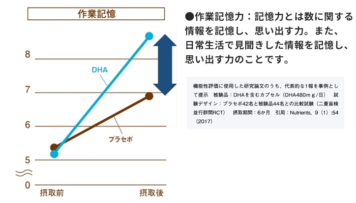 臨床試験の結果、DHAを摂取したグループは作業記憶力※が向上しています。