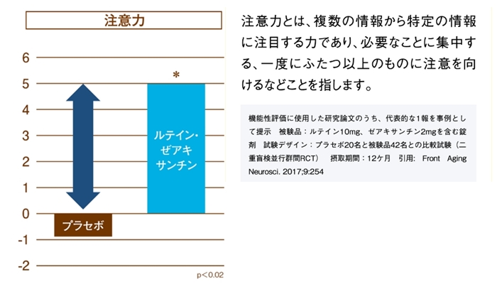 臨床試験の結果、ルテインとゼアキサンチンを摂取したグループは注意力※が向上しています。