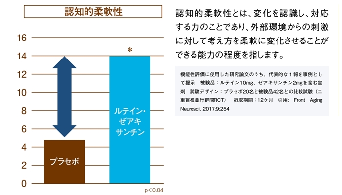 臨床試験の結果、ルテインとゼアキサンチンを摂取したグループは認知的柔軟性※が向上しています。