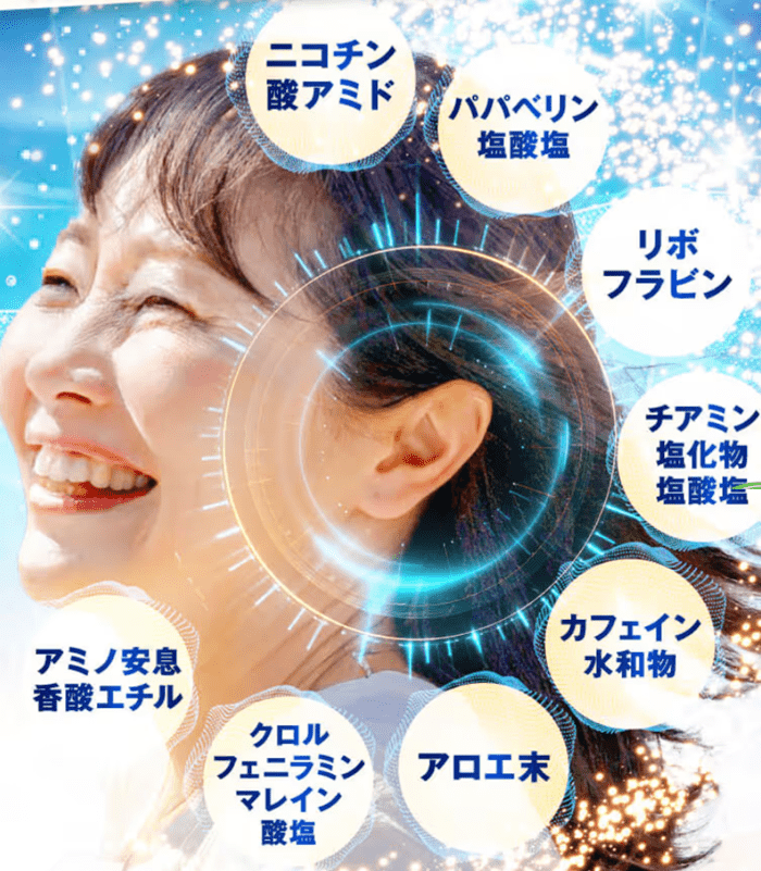 ちなみに当記事で紹介の市販薬「音に喜びを」はパパベリン塩酸塩とニコチン酸アミドやビタミンB群をはじめとした8つの有効成分が耳鳴りの症状を緩和します。