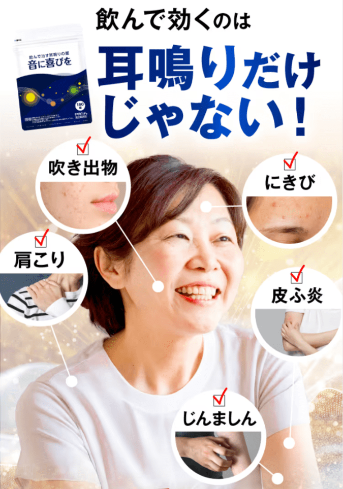 耳鳴り症、皮ふ炎、蕁麻疹、ニキビ、吹き出物、肩こり |