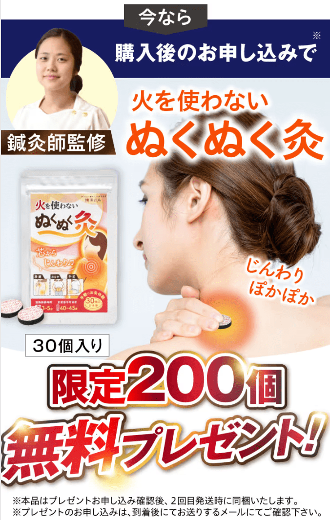 鍼灸師監修の火を使わない「ぬくぬく灸」を無料プレゼント!※