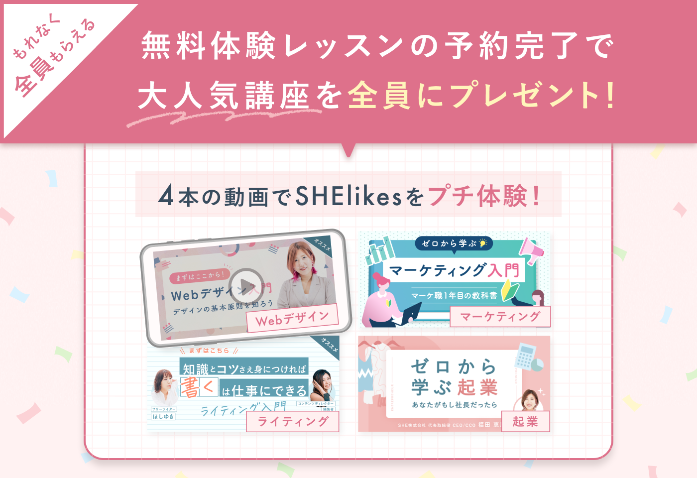 【今だけ、体験予約でWebデザイン人気講座プレゼント】