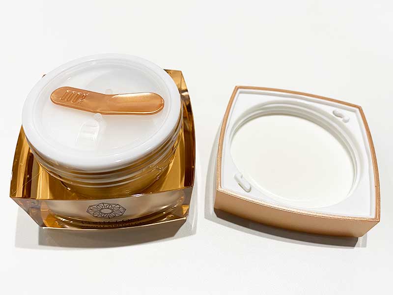 高級感のあるパッケージで、上品なブロンズカラーのジャーです。