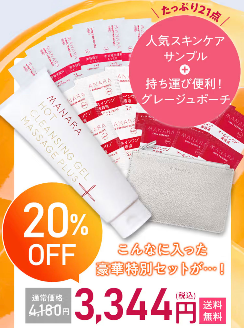 今なら!公式サイト限定で「人気スキンケアサンプル&オリジナルポーチ」が付いた特別セットが3,344円(税込)でお試し出来ます!