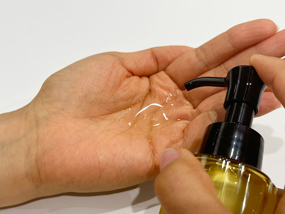メイクと馴染ませたあともスルスル気持ちがよくて、指先にまったく力を入れなくて大丈夫です。 このクレンジングオイルは、オイルなのにオイルっぽくなくて、上手く説明できませんが、気持ちよく使えるので、ぜひ試していただきたいです。