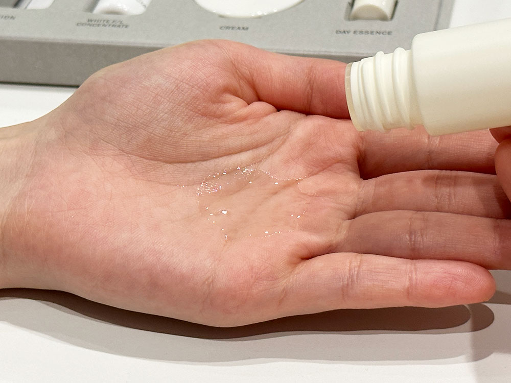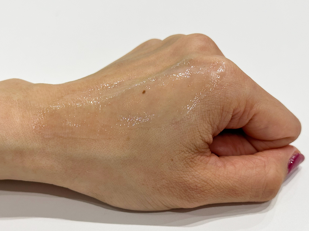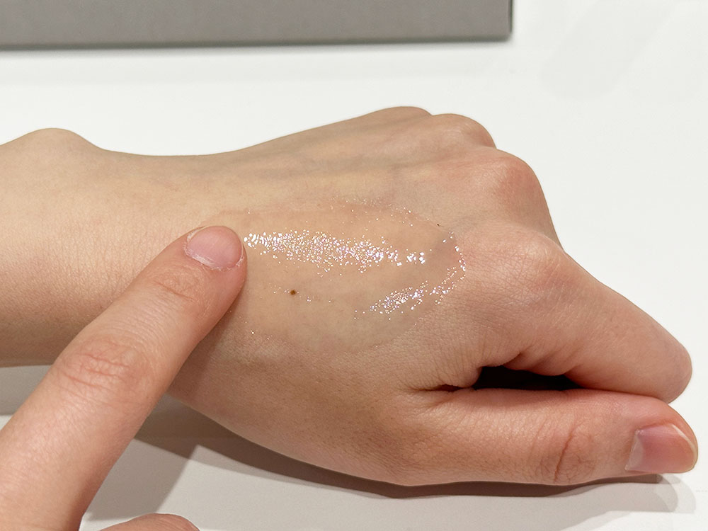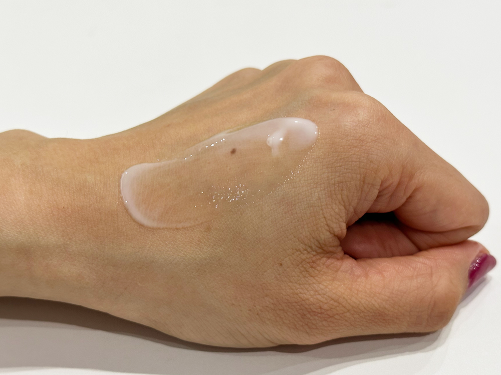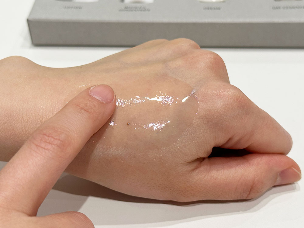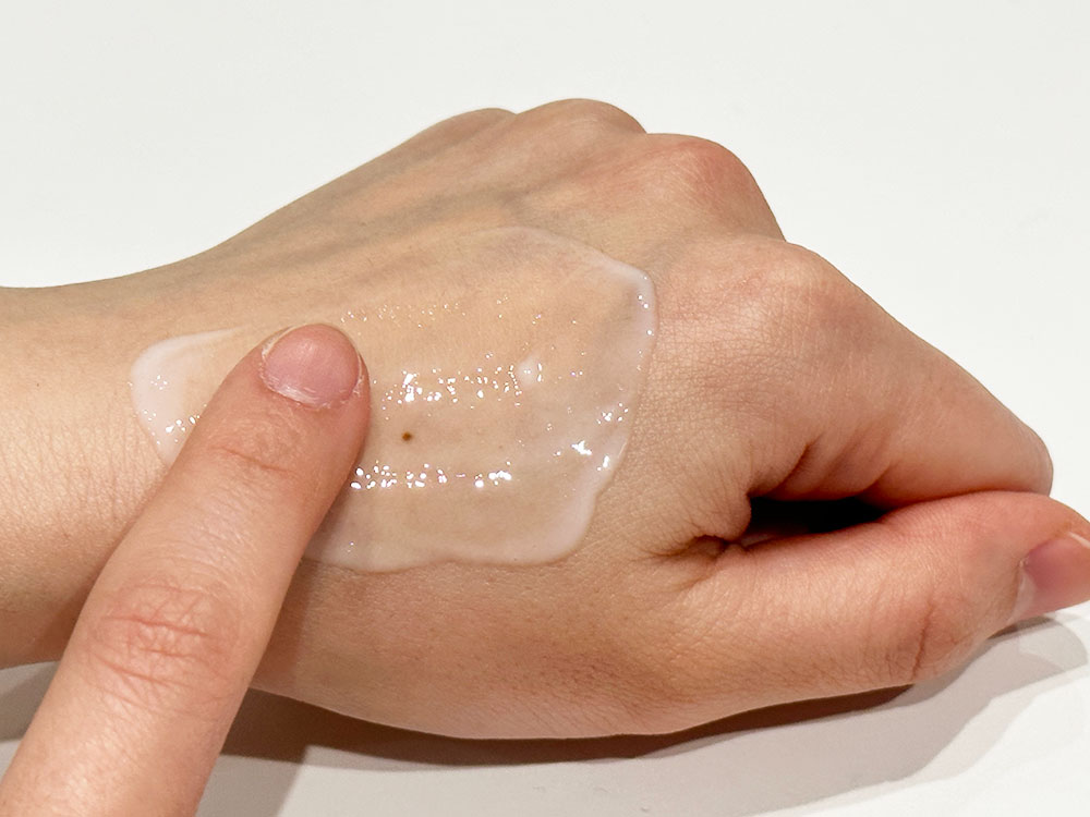 とろっとした乳液のようなテクスチャです。ハンドプレスすると、手に吸い付くような感触でした。