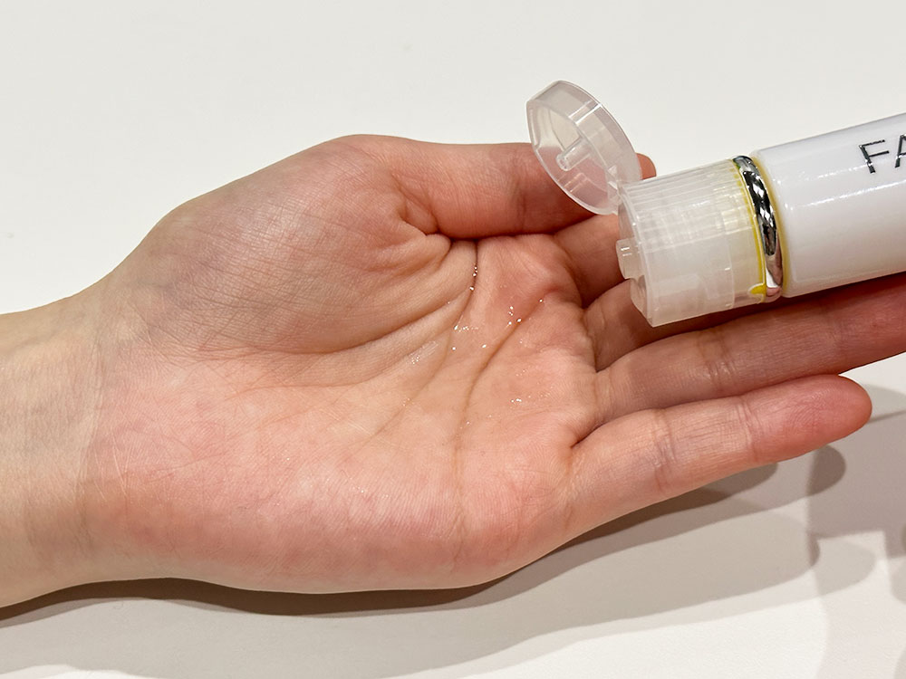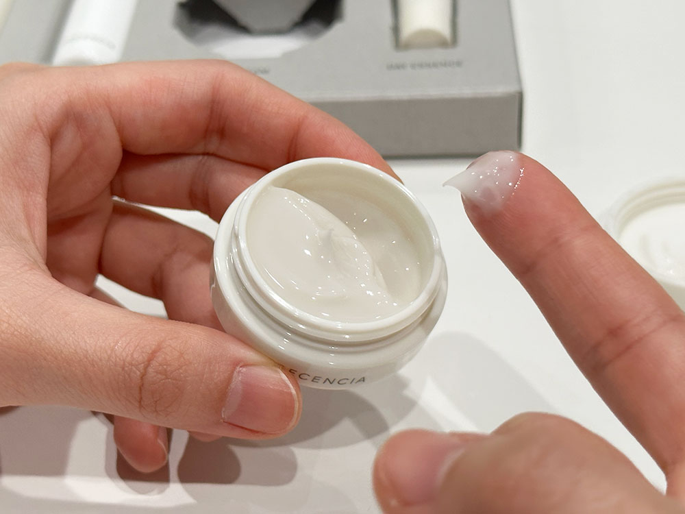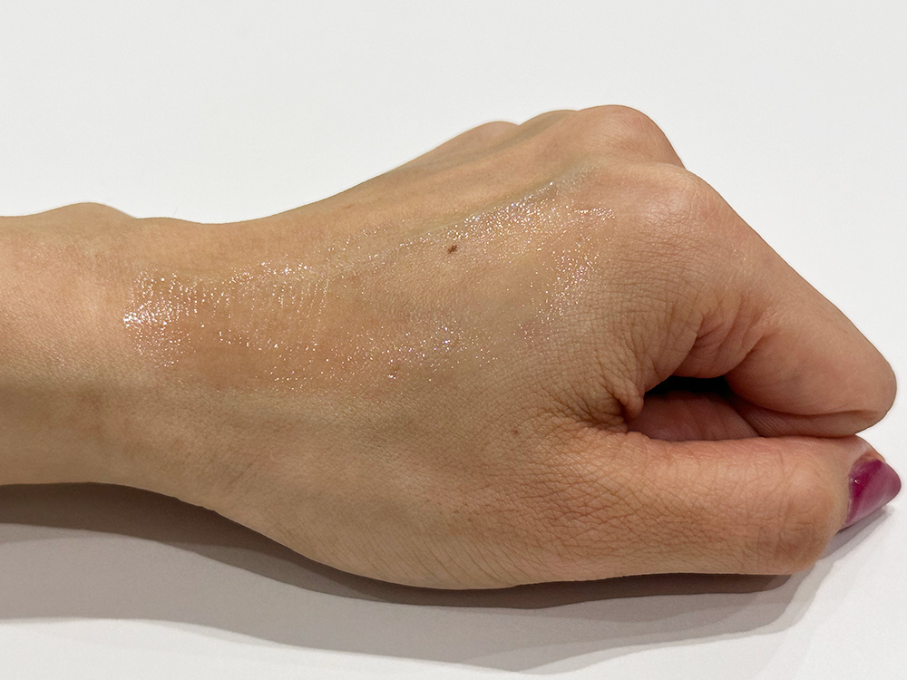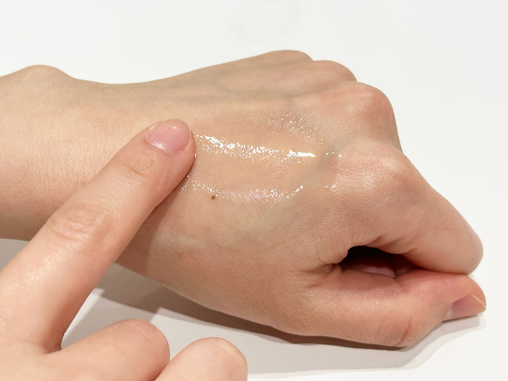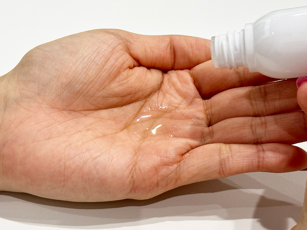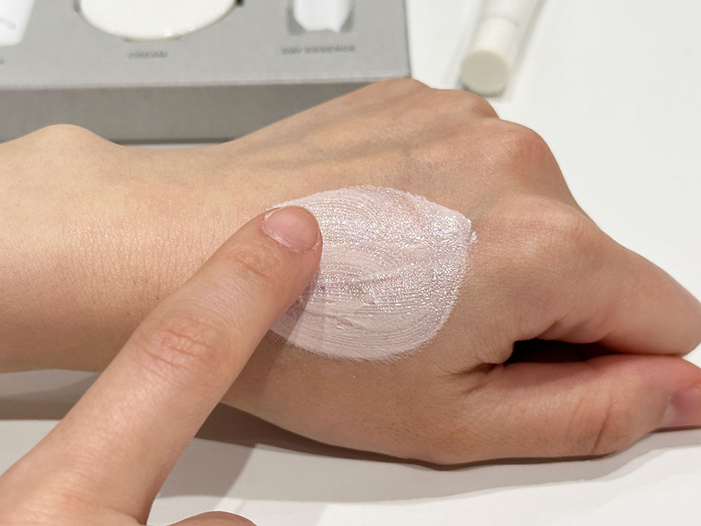 とろっとした乳液のようなテクスチャです。ハンドプレスすると、手に吸い付くような感触でした。