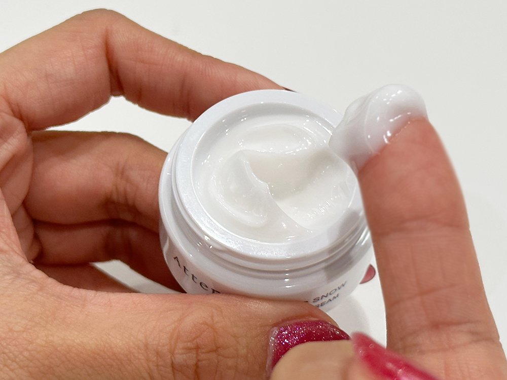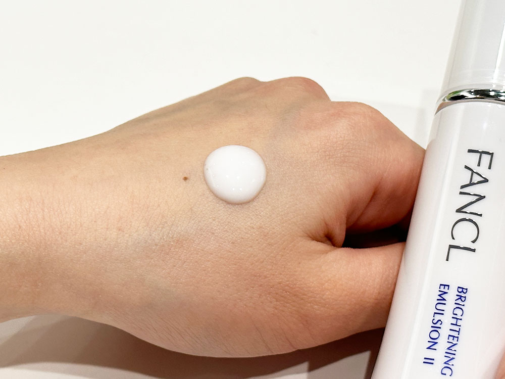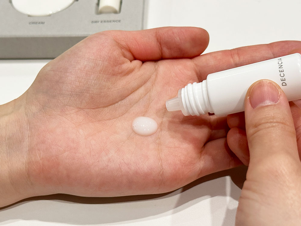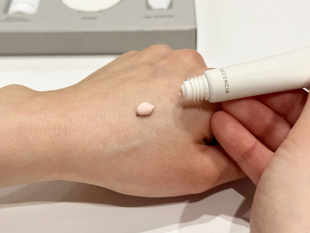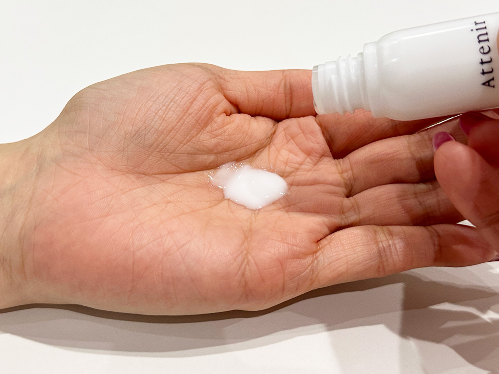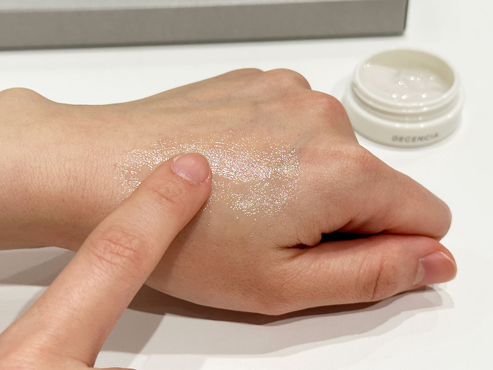 とろっとした乳液のようなテクスチャです。ハンドプレスすると、手に吸い付くような感触でした。