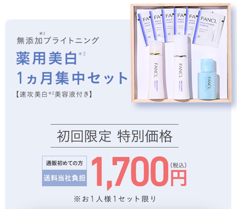 FANCL ブライトニングは1カ月分のトライアルセットが1,700円(税込)でお試しできます。
