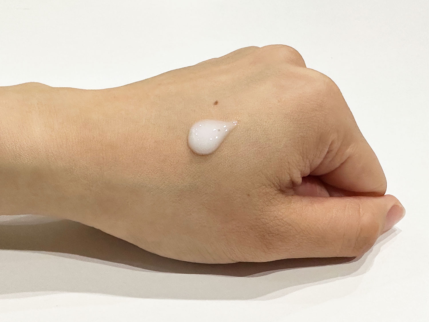 とろっとしたテクスチャーです。 ベタつきも残らず乳液の重たさがないサッパリした使い心地でした。