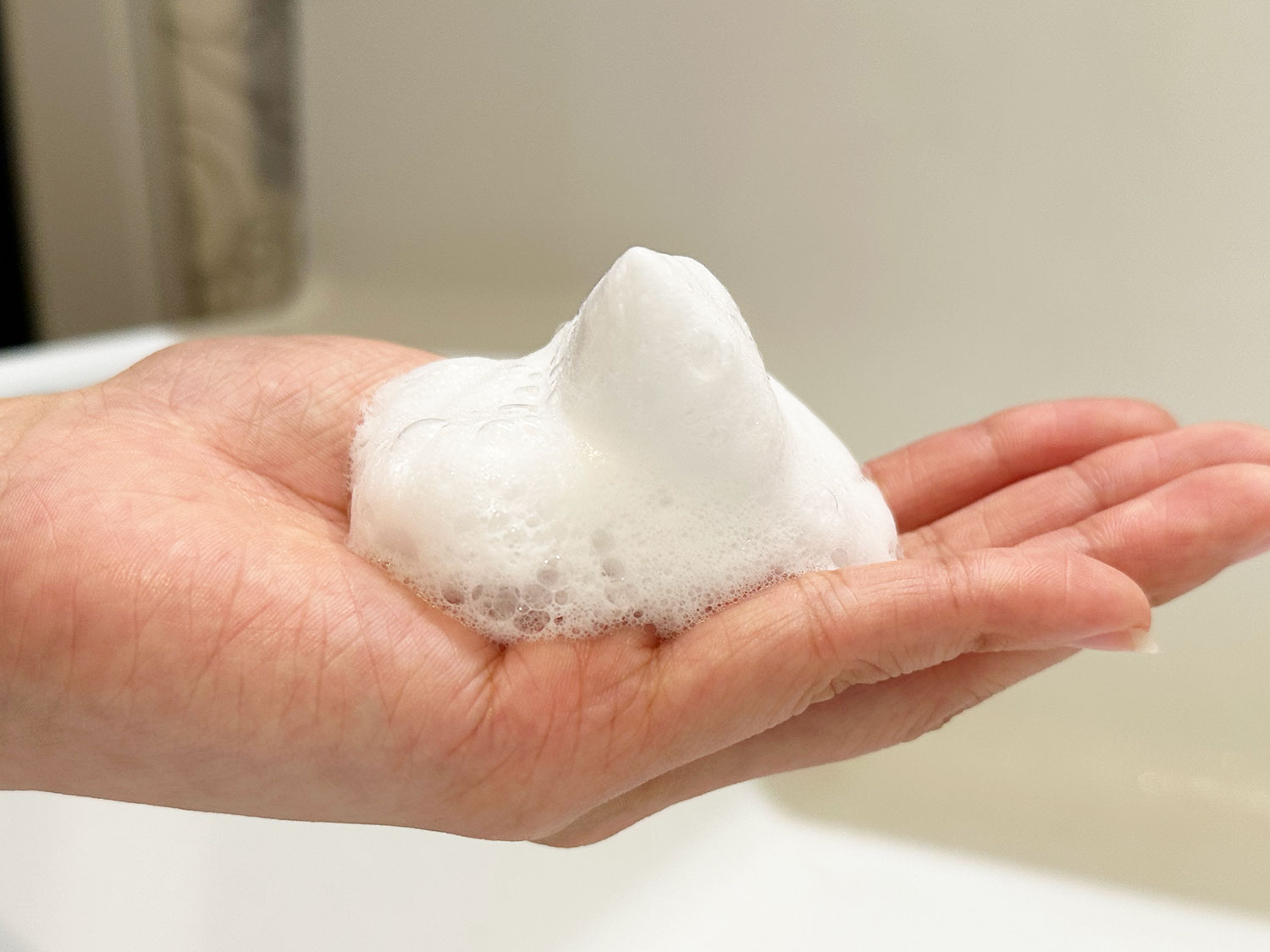 少量でも泡立ちがよく、もちもちふわふわで弾力のある泡が作れます。 洗い上がりはさっぱりして、優しい使い心地の洗顔料だと感じました。