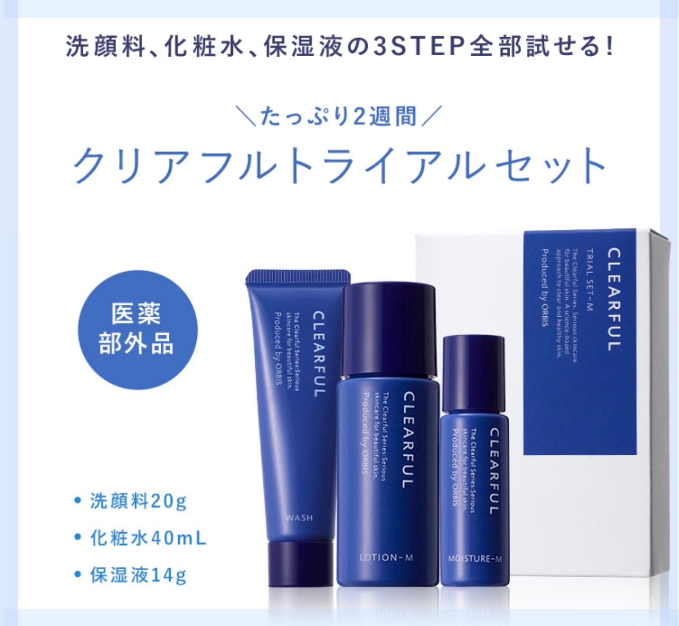 オルビス クリアフルのトライアルセットは洗顔料、化粧水、保湿液の3点セットで、14日間分使うことができます。持ち運びやすいのでトラベル用としても使いやすそうです♪