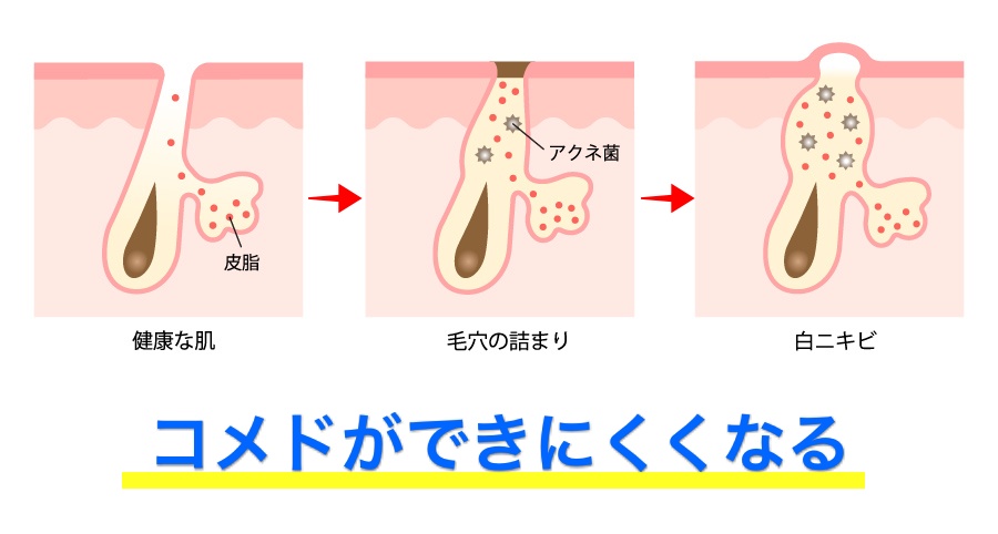 保湿された肌はバリア機能が正常に保たれて、肌荒れやニキビになりにくい状態になります。