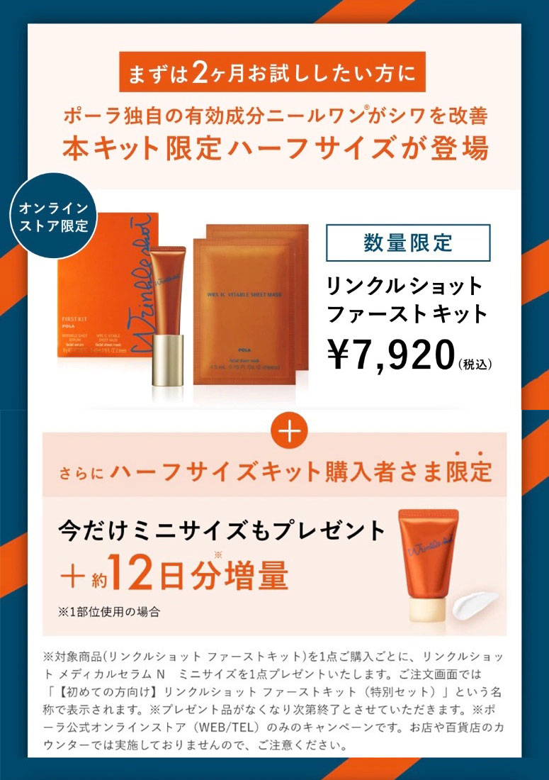 公式オンラインストア限定で「ハーフサイズ」が登場!さらに、ハーフサイズ購入の方に約12日分のミニサイズをプレゼント中!