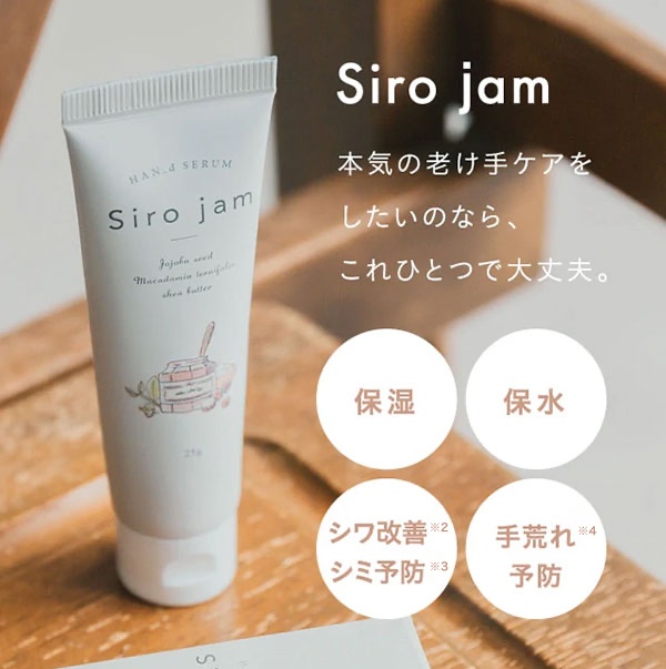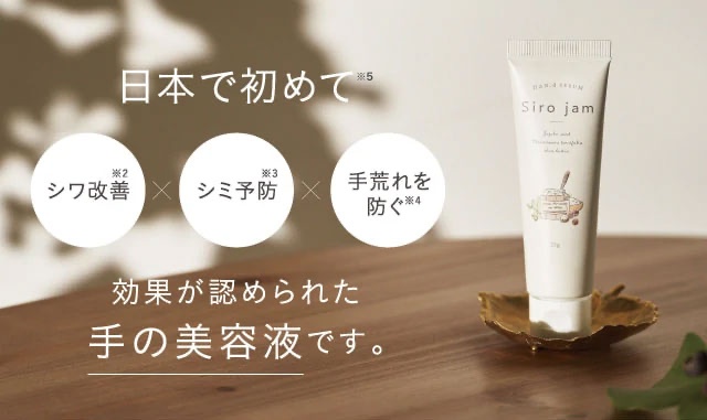 シロジャムは手のシワ改善、シミ予防、手荒れを防いでくれる手の美容液です。
