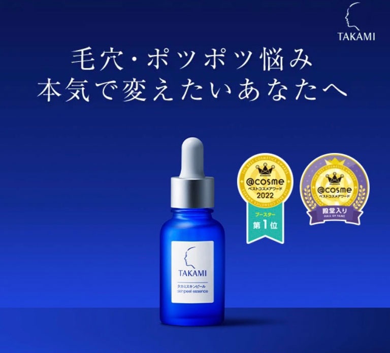 さまざまな美容誌でベストコスメ賞を受賞し、毛穴に悩む女性に人気の美容液「タカミスキンピール」