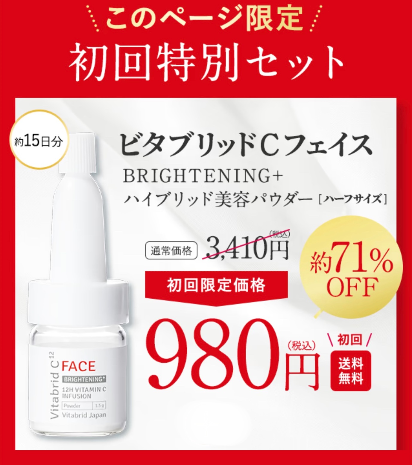 今なら!公式サイト限定で「ビタブリッドCフェイス ハーフサイズ」を定期初回980円(税込)でお試し出来ます!