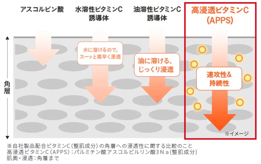 | 主成分 | 高浸透ビタミンC誘導体 | ビタミンC | ビタミンC誘導体 |