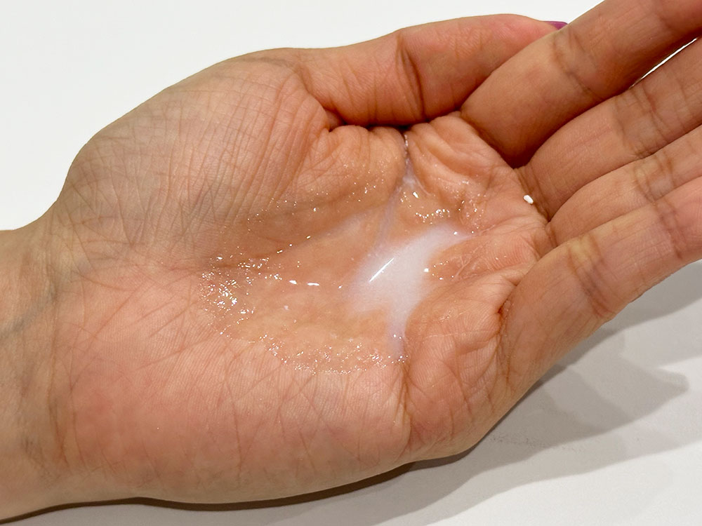 少量でも伸びが良いので塗りやすく、つけた後もベタつきはありません。